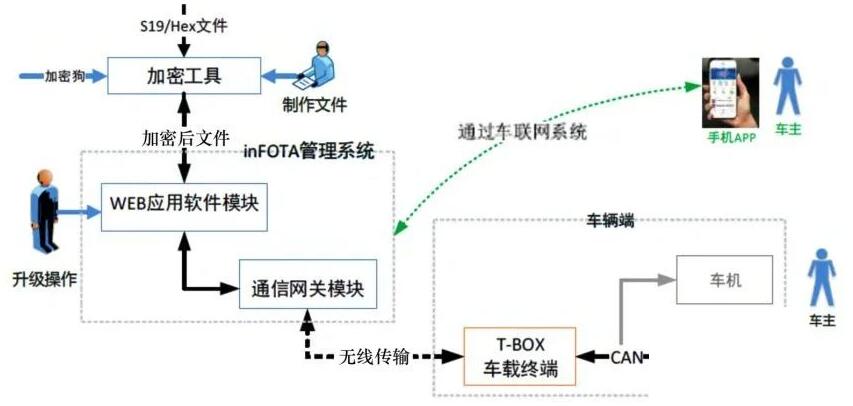FOTA 系统网络安全性需要确保升级包在远程服务器端的安全存储、后台服务器到车端的安全加密通讯、中央网关的升级包解密、防火墙和