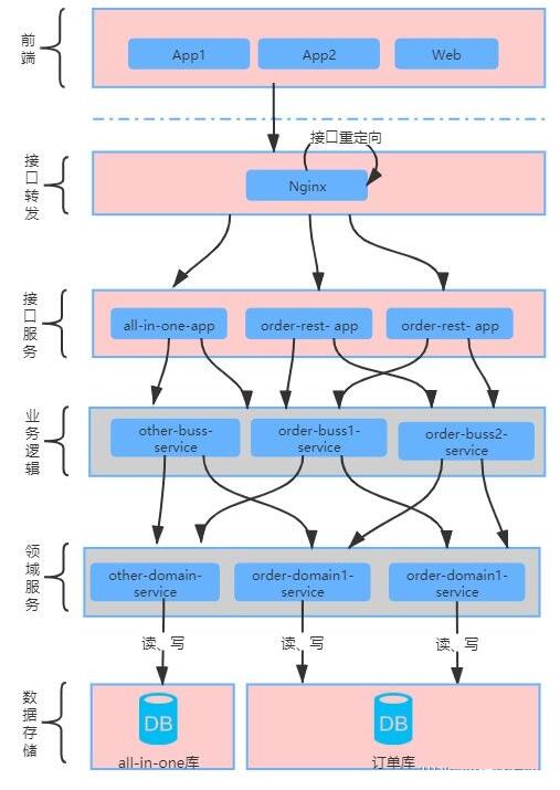 1、通过nginx将老的订单相关接口,转发到新的订单接口服务层应用的相关接口,实现流量切换。