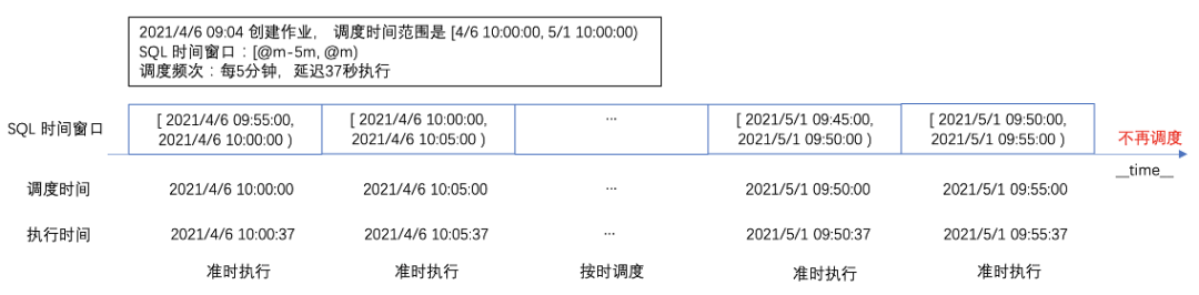 定时执行可以理解为每个任务之间有时间先后顺序,并且要在特定的时间点执行,比如每隔1小时对日志进行监控,00点的监控任务需要首先执行,01点的监控任务需要在01点准时执行;同样,类似的定时场景,还有仪表盘订阅、定时计算等。