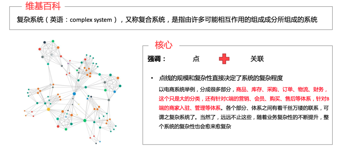 各个部分、体系之间有着千丝万缕的联系,可谓之复杂系统了。当然了,远远不止这些,随着业务复杂性的不断提升,整个系统的复杂性也会愈来愈复杂。