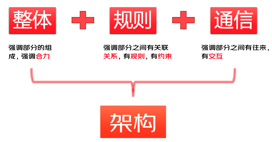 所以架构本质上就是一种指导型的约束,以约定整体和部分、部分和部分之间的关系,以使整体更加稳定,更加可靠。