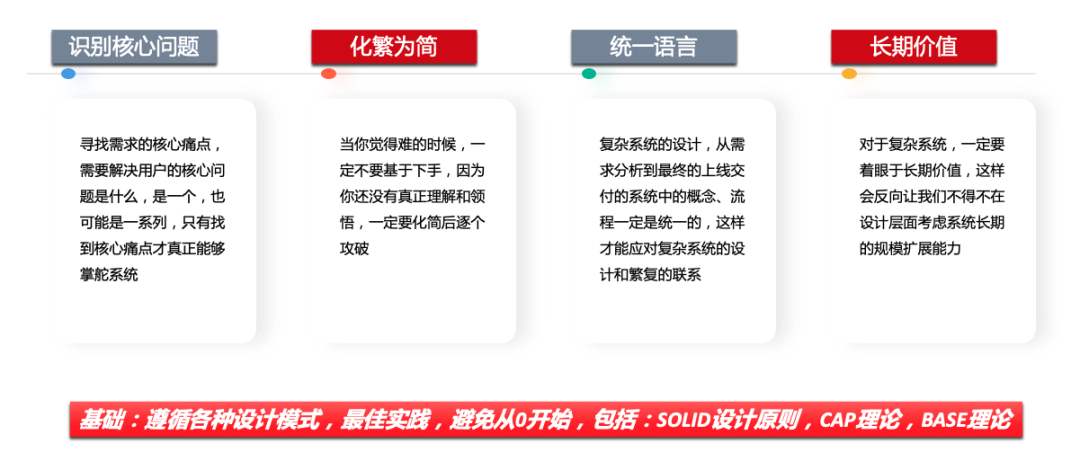 遵循各种设计模式,最佳实践,避免从0开始,包括:SOLID设计原则,CAP理论,BASE理论