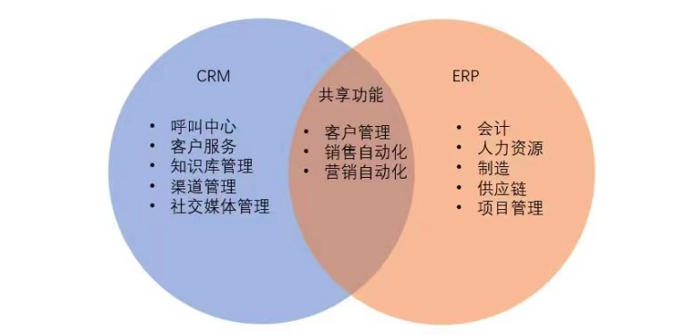 ERP与CRM的关系: ERP是为了提高企业内部的资源的计划和管控能力的,怎样满足客户需求、及时交货、帐期风控等,通过内部数据来提高运转效率,提高客户服务质量,讲究的是提效。CRM是对外管理,专注于支持、销售和潜在客户建立客户关系,维持长期发展。CRM的使用环节主要是客户能接解到的部门,销售部、市场部、售后部等。可以理解为CRM是ERP的最前端,CRM与ERP无缝衔接(部分数据共享)完成系统集成,能使员工实时访问重要信息,库存水平、发化、客户财务、订单历史记录、退货、付款、定价等信息,数据的打通,提高内部工作效率和客户服务质量。