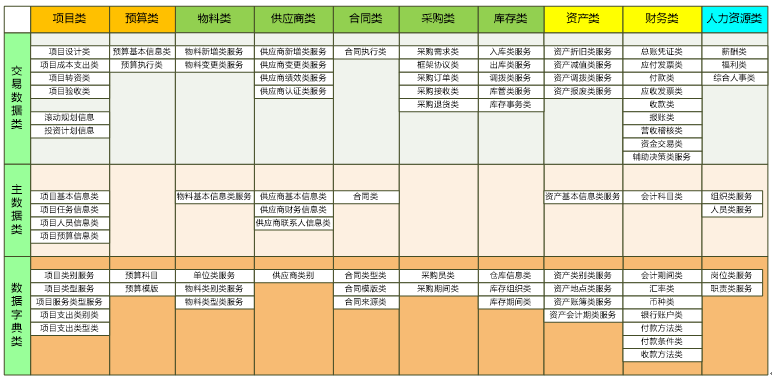 数据服务: 更多的是从数据CRUD分析中识别出来的服务,其中既包括了主数据,也包括了共享动态数据。一个服务如果更多是事后非实时的共享数据传递或数据查询,则更多的是数据服务。从这个层面来说业务服务和数据服务本身存在一些较难界定清楚的地方。也有一些方法是单独仅仅将主数据和共享数据中心提供出来的分析规划为数据服务,其它全部为业务服务。