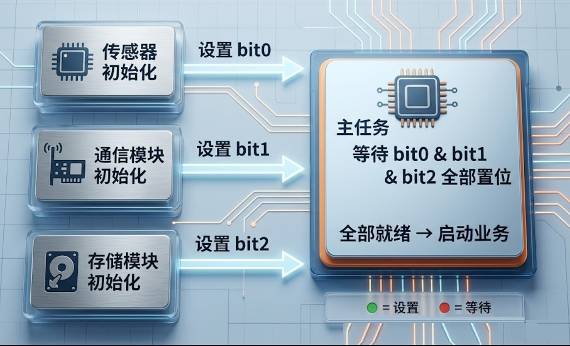 举个实际例子:系统初始化阶段,主任务要等所有子模块都初始化完成后才启动业务逻辑。
