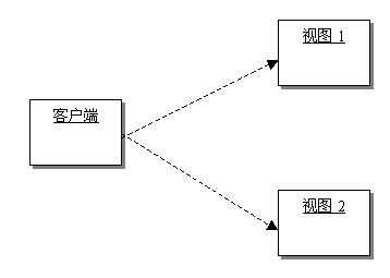 准确的说,这里谈不上设计,只是简单让客户端访问不同的视图而已。当然,在设计的示意图中,我们并没有必要画出所有的视图来,只要能够表达客户端和视图的关联性就可以了。 (架构设计需要和具体的实现绑定,但是在这个例子中,为了着重体现设计的演进,因此把不必要的信息都删掉。在实际的设计中,视图可能是JSP页面,也可能是一个窗口。) 第一个迭代周的任务很快的完成了,小组负责的表示层模块也很顺利的和其它小组完成了对接,一个简陋但能够运转的小系统顺利的发布。客户观看了这个系统的演示,对系统提出了修改和补充。 第二个迭代周中,模块要处理的视图增加到了30个,视图之间存在相同的部分,并且,负责数据层的小组对我们说,由于客户需求的改进,同一个视图中将会出现不同的数据源。由于我们的视图中直接使用了数据层小组提供给我们的数据源的函数,这意味着我们的设计需要进行较大的调整。 考虑到系统的视图的量大大的增加,我们有必要对视图进行集中的管理。前端控制器(Front Control)模式将会是一个不错的技巧。对于视图之间的普遍的重复部分,可以将视图划分为不同的子视图,再把子视图组合为各种各样的视图。这样我们就可以使用组合(Composite)模式: